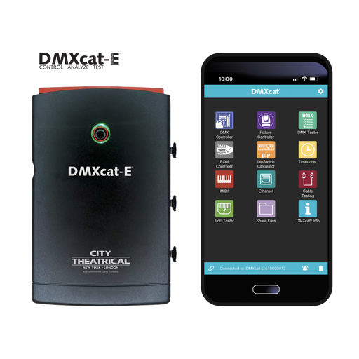 City Theatrical DMXcat-E¨ is a compact test and diagnostic tool designed for technicians working with network-based lighting control systems. Ideal...