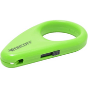 The Westcott Mini Ceramic Safety Blade Box Opener in green is a must-have tool for any production prep. Perfect for cutting PVC tape during looming, its ceramic blade delivers precise, clean cuts with minimal effort. The blade is designed to be safer than traditional metal blades, reducing the risk of accidental cuts while offering long-lasting sharpness. Compact and ergonomic, this box opener is easy to handle and carry, making it an essential addition to your toolkit for efficient and safe tape cutting in the hireshop.